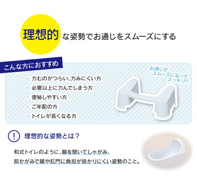 【こんな方におすすめです】 ・力むのがつらい、力みにくい方 ・必要以上に力んでしまう方 ・便秘しやすい方 ・ご年配の方 【使いやすい工夫】 ・洋式トイレに置くだけで簡単に使えます ・傾斜がついていて踏ん張りやすい ・天面がザラザラしていて足を置きやすく滑りにくい ・底面には滑り止め付き ・丸洗いできるので衛生的にご使用いただけます★