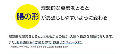 洋式トイレでも、和式トイレの理想的な姿勢でのお通じをサポートします。