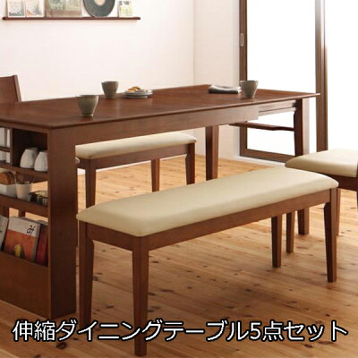 ワイドに広がる 伸長式 ダイニングテーブルセット 5点(テーブル+チェア2脚+ベンチ2脚) 【送料無料】 伸縮 ダイニングセット 135 170 伸びる 延長 大型 激安 安い ダイニング5点セット ダイニングベンチ