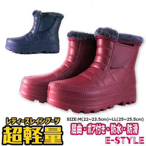 【あす楽】 【送料無料】 レインブーツ ショートブーツ レディース e-style イースタイル 孔 【EST52100B】ボア スニーカーより軽い 防水 マジックベルト 一体成型 □est52100b□